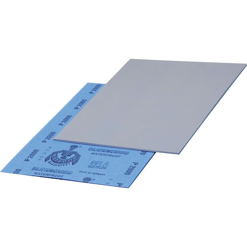 Carta in lattice, robusta e flessibile con rivestimento uniforme di carburo di silicio (SiC). Elevato potere abrasivo e lunga durata. Dim. foglio 230×280 mm. Uso: Impiegata principalmente per la levigatura a mano, nelle officine di riparazione e di verniciatura, per la satinatura di superfici laccate o spatolate. Dati tecnici Acciaio < 1400 N/mm² m/s idoneo Al/Mg m/s idoneo a umido max. idoneo Acciaio < 60 HRC m/s idoneo Acciaio < 67 HRC m/s idoneo Uni m/s limitatamente adatto Alluminio, CFRP m/s idoneo Acciaio < 55 HRC m/s idoneo Ti m/s idoneo a secco limitatamente adatto Pietra m/s limitatamente adatto INOX m/s idoneo GG(G) m/s idoneo Vernice m/s idoneo Materiale abrasivo Carburo di silicio Lunghezza foglio abrasivo mm 230 Sigla materiale abrasivo SiC Larghezza foglio abrasivo mm 280 Attributo del nome del prodotto 230×280 mm Tipo di prodotto Carta abrasiva Grado di finezza per lucidatura Grana 1.500 Denominazione originale prodotto 911 A