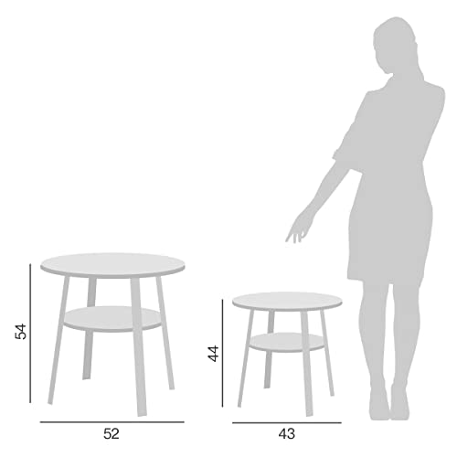 Durevole e facile da pulire: la robusta struttura del tavolo è realizzata in acciaio verniciato a polvere nero opaco, mentre i ripiani sono in MDF rivestito. Dimensioni: diametro 52 cm x altezza 54 cm, portata 30 kg.