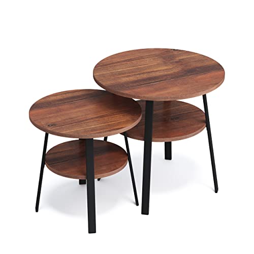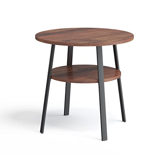 Stardis Tavolino rotondo stabile in metallo/legno, diametro 52 x altezza 54 cm, con 2 ripiani, per soggiorno, camera da letto, effetto noce