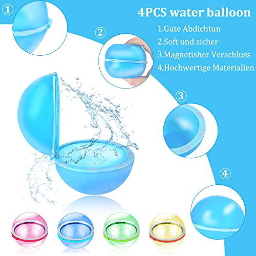 Starich Palloncini d'Acqua 4 Pezzi Bombe d'Acqua Autosigillanti Bombe da Acqua Palloncini Riutilizzabile Bombe d'Acqua AutosigillantiFacile da Riempire per Estivi Piscina Spiaggia