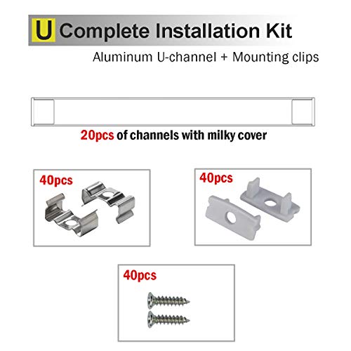[Abbastanza accessori] Queste 20 lampadine LED a forma di U in alluminio sono dotate di 20 coperchi in plastica color latte, 40 tappi terminali, 40 clip di montaggio, 40 viti. Ogni segmento è lungo 1 metro, la lunghezza totale è di 20 metri. I canali possono essere accorciati a qualsiasi lunghezza.