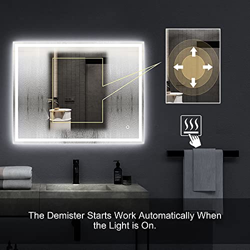 【Eccellente luce LED ad alta efficienza energetica】 Gli specchi illuminati adottano 6500K luce led bianco puro/bianco freddo che hanno una migliore qualità di distribuzione della luce e concentrano la luce in una direzione, perfetta per la rasatura e il trucco. Inoltre, le luci a LED sono fino