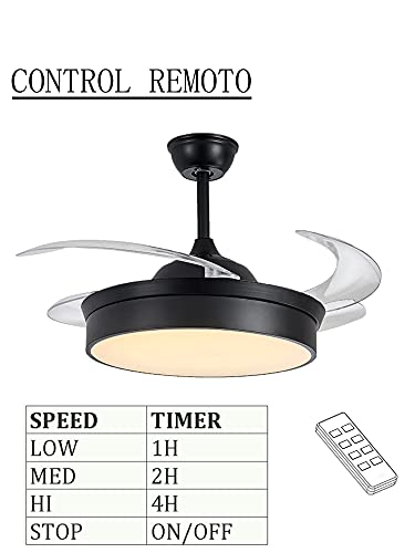 StarLED ventilatore da soffitto effetto cielo stellato, Motore silenzioso per stanza,ventilatore a 4 pale ABS richiudibili, ventilatore con telecomando e timer... (NERO)