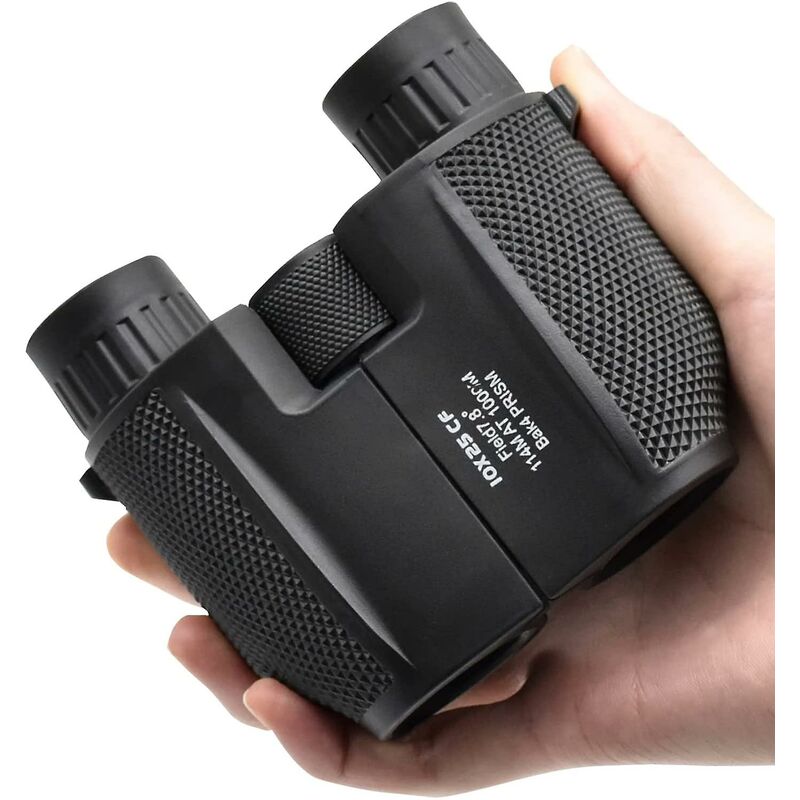 Visione chiara e precisa: ingrandimento 10x e lente da 25 mm. Binocolo HD ad alta potenza: campo visivo di 114 m (1000 iarde/367 piedi). Le lenti con rivestimento multiplo prevengono l'abbagliamento e garantiscono una visione chiara. Puoi vedere i dettagli delle cose. Resistenza Struttura in gomma resistente, impugnatura antiscivolo per evitare cadute antiestetiche o accidentali. Questi binocoli sono impermeabili. Puoi utilizzare questi mini binocoli in diverse situazioni della tua vita quotidiana. Lenti con rivestimento multiplo: per una visione super nitida con una buona protezione, tutte le lenti ottiche sono state lucidate da una pellicola verde multistrato. rivestito. Prisma placcato FMC. Tutte le lenti ottiche sono di ottima qualità. Puoi vedere gli oggetti molto chiaramente. Uso versatile e ideale per attività all'aperto come birdwatching, viaggi, caccia, concerti, sport e altro ancora. Il miglior regalo per bambini, amici e appassionati di outdoor. Piccolo, leggero e potente