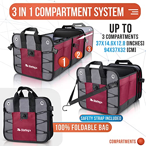 Starling's - Organizer organizer per bagagliaio, per auto, molto resistente e durevole, pieghevole, per auto, camion, SUV, scomparti regolabili, antiscivolo, impermeabile.