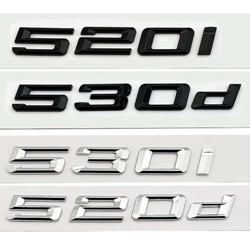 STARMS 3D ABS Auto Lettere Posteriore Tronco Distintivo Sticker 520i 520d 530i 535i 535d 530d Emblema Logo Fit for BMW Lettering E60 E39 F10 Accessori (Color: Chrome Silver, Size: 530d)