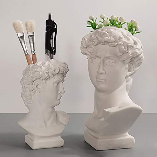 Starnearby Statua David Vaso in Resina Statua Testa David Vaso Testa Statua Greca Portapenne Scultura David Vaso Decorativo Scultura Porta Pennelli Trucco Artigianato Portaoggetti Decorazione