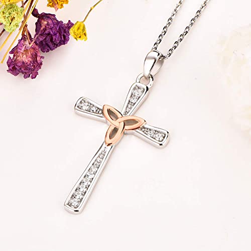 Starnny Collana Donna Argento 925,Ciondolo Gesù Crocifisso Celtico Croce with 3A Zirconia Cubica with Plaqué or blanc/jaune Regali di Gioielli per Donna