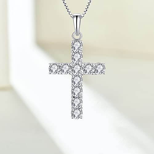 Starnny Collana Donna Argento 925,Collana con croce 3A Cubic Zirconia con regalo di gioielli in oro bianco A