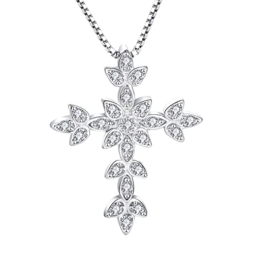 Starnny Collana Donna Argento 925,Collana con croce 3A Cubic Zirconia con regalo di gioielli in oro bianco B