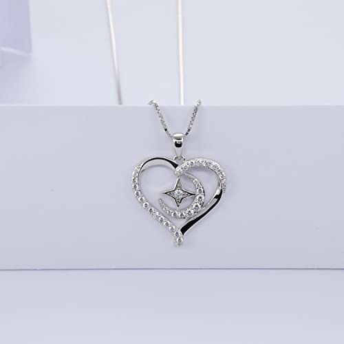 Starnny Collana Donna Argento 925,Collana Cuore Stella per le Donne 3A Zirconia Collana in oro bianco con Ciondolo Regalo per Lei