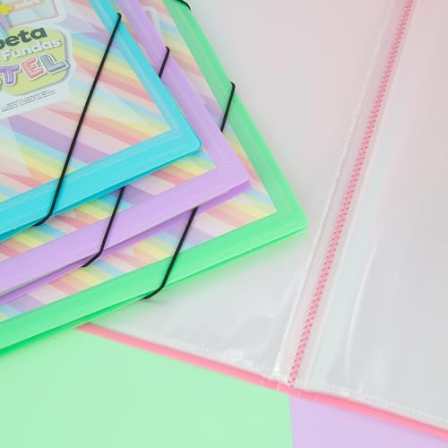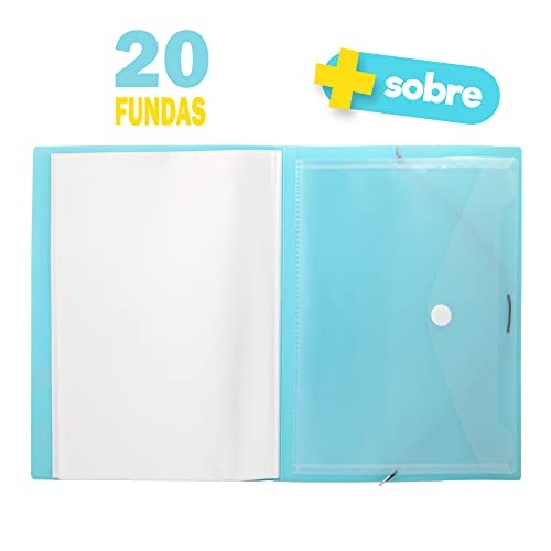 Starplast Cartelle Con Fodere - Cartelle in Plastica, Raccoglitore, Portadocumenti, Chiusura Elastica, Formato A4, per Uso Scolastico e Ufficio - 20 Fodere Azzurro Pastello