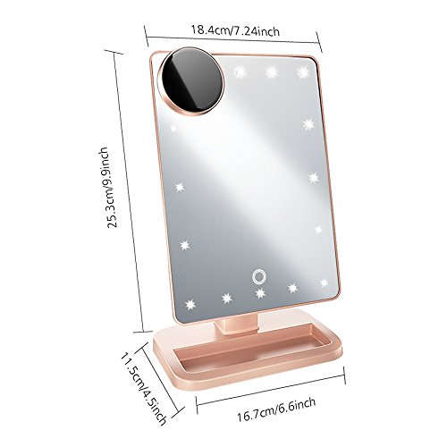 ILLUMINAZIONE LED CHIARISSIMA! Ottieni un trucco professionale con lo specchio illuminato a LED di lunga durata con lo specchietto rimovibile che ti garantisce una distribuzione della luce uniforme e omogenea con la semplice pressione di un pulsante! Regola la luminosità con l'interruttore a doppio funzionamento premendolo a lungo per ridurre e aumentare la luce dei LED. È possibile regolare lo specchietto in base alle proprie esigenze!
