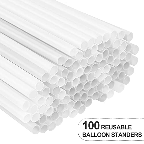 StarryTiger, 100 bastoncini per palloncini, riutilizzabili per feste, compleanni, matrimoni, 42 cm (bianco)