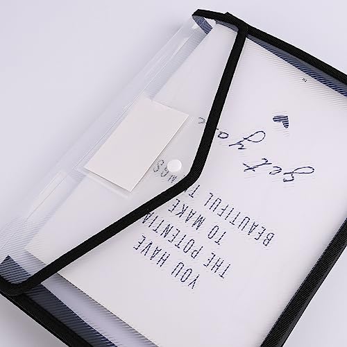 【Design Umanizzato】Il design con chiusura a scatto rende la borsa portadocumenti facile da aprire e chiudere, consentendo di trovare e riporre rapidamente gli oggetti. Il design traslucido e a linguette facilita l'ordinamento e l'identificazione degli oggetti.