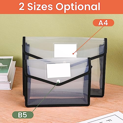 StarryTiger 6 Pezzi Borsa Portadocumenti Impermeabile A4 in Plastica, Cartella Portadocumenti A4 di Grande Capacità con Etichetta e Pulsante per Ufficio, Scuola, Casa, Portatile, Robusta