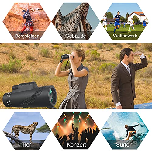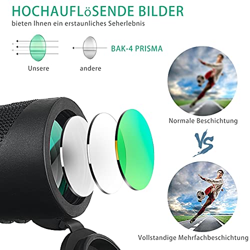 Elevato contrasto e soluzione: il nostro telescopio monoculare dispone della più recente tecnologia ottica, con prismi BAK-4 e lenti completamente multistrato che con un tasso di trasmissione della luce del 99,5%, che migliora notevolmente la trasmissione della luce e la luminosità. La funzione di visione notturna integrata per la luce scarsa, ti aiuta a mostrare un'immagine nitida e di alta qualità anche in condizioni di scarsa illuminazione.