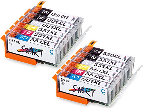 Start - 12 XL CHIP Cartucce compatibili per Canon PGI-550BK XL Nero, CLI-551BK XL Photo-Nero, CLI-551C XL Ciano, CLI-551M XL Magenta, CLI-551Y XL Giallo, CLI-551GY XL Grigio