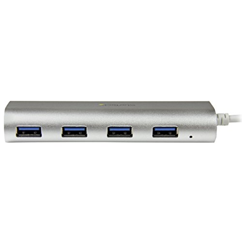 StarTech.com Hub USB 3.0 (5Gbps) a 4 porte compatto e portatile con cavo integrato, Hub USB in alluminio ottima per MacBook, Argento (ST43004UA)