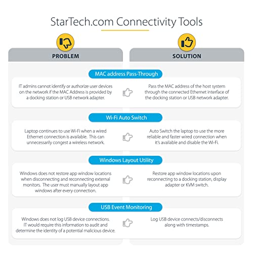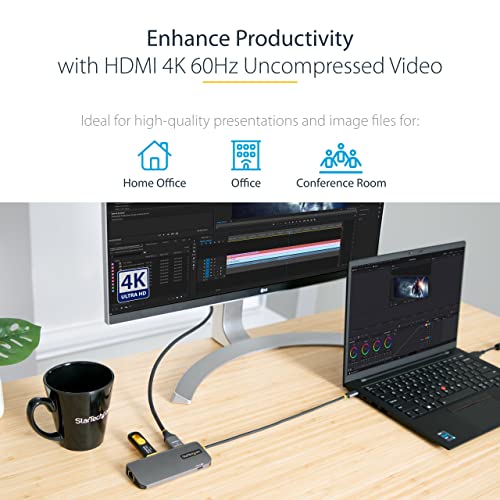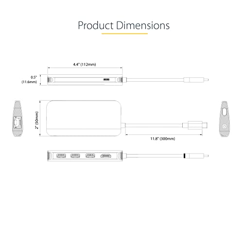 StarTech.com Adattatore USB C Multiporta, HDMI 4K 60Hz, Hub a 3 Porte USB-A 5Gbps, 100W PD Pass-Through, GbE, Cavo Integrato da 30cm, Docking Station/Mini Dock da Viaggio (127B-USBC-MULTIPORT)
