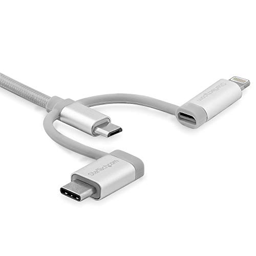 StarTech.com Cavo di ricarica multiplo USB da 2 m - Da USB a Micro-USB o USB-C o Lightning per iPhone / iPad / iPod / Android - Certificato Apple MFi - Caricatore USB 3 in 1 - Intrecciato