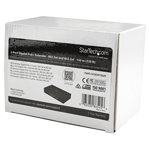 StarTech.com Ripetitore Gigabit Poe+ a 2 Porte, Extender Power Over Ethernet 802.3At e 802.3Af, 100M