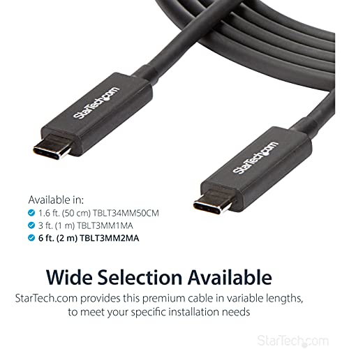 StarTech.com Cavo Thunderbolt 3 da 2m - Cavo Thunderbolt 3 USB-C -4K 60Hz- 40 Gbps - Cavo Dati da USB-C a USB-C - Power delivery 100W/5A - 2 metri - Garanzia 2 anni - Colore Nero (TBLT3MM2MA)