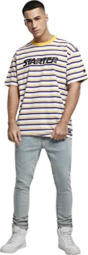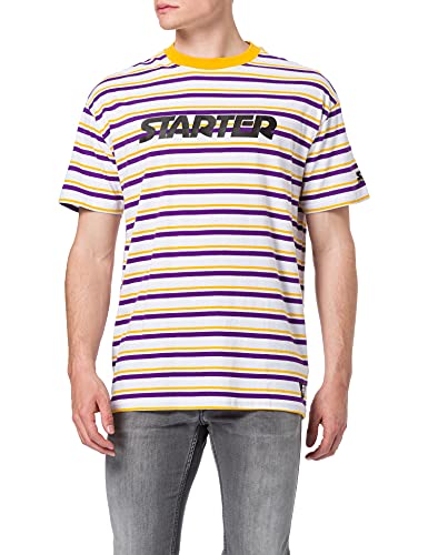 Starter Black Label T-Shirt Starter Stripe Jersey, Bianco/Giallo/Viola/Bianco, M Uomo