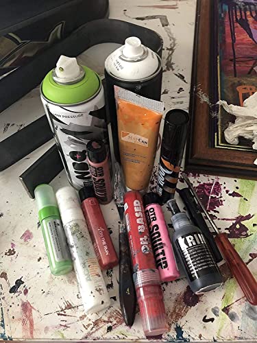 Starter Set Graffiti Street Art Workshop Atelier - Montana bombolette spray Squeezer Molotow Marker Hello My Name Sticker adesivi Edding penne permanenti ad alta opacità - ideale per principianti