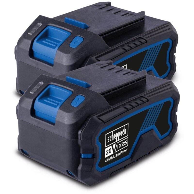 Il kit comprende: 2 Batterie al litio 20V 4.0Ah Scheppach SBP4.0 serie 20V ixes Batteria al litio 20V 4.0Ah Scheppach SBP4.0 serie 20V ixes Una batteria per tutti i dispositivi: la batteria SBP4.0 può essere utilizzata per tutti i dispositivi della serie Scheppach IXES da 20 volt. Con 20 volt e 4,0 Ah, la potente batteria garantisce prestazioni costanti. L'innovativa gestione delle singole celle garantisce un utilizzo efficiente e la massima durata di funzionamento delle celle agli ioni di litio. Il rischio ridotto al minimo di scarica eccessiva e profonda aumenta la durata della vita della batteria. Lo stato di carica attuale può essere letto sul display LED a 3 livelli. - Potente batteria agli ioni di litio da 20 V/4,0 Ah - Universalmente applicabile: una batteria per la serie Scheppach IXES da 20 volt - La capacità residua della batteria può essere facilmente letta sul display LED a 3 livelli - La gestione individuale delle celle protegge dal surriscaldamento e dalla sovratensione