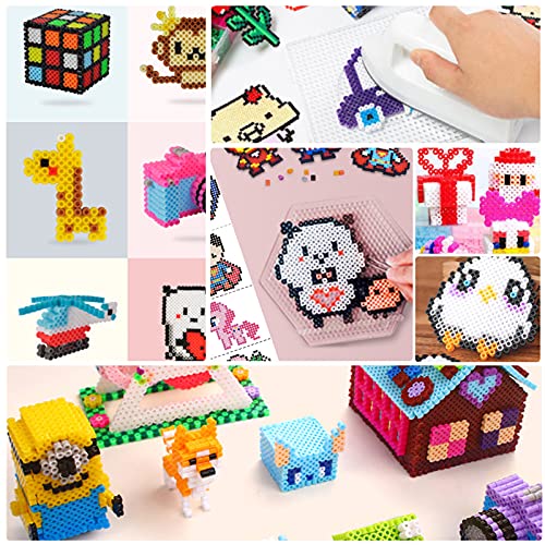 Il kit di perline da stiro STARTOGOO viene fornito con vari accessori: 5 piatti fissi, 2 carte stencil 1: 1, 2 pinzette, 5 pellicole trasparenti, 10 portachiavi a catena, 10 cordino nero, 10 adesivi per frigorifero, ecc.