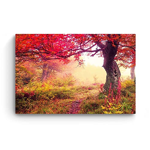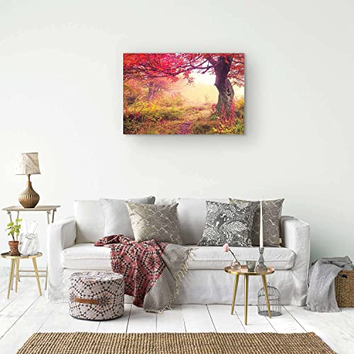 Startonight Quadro su Tela Paesaggio Fiabesco nella Foresta Rossa, Quadri Moderni Natura Astratta Stampe Camere da Letto 60 x 90 cm