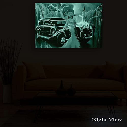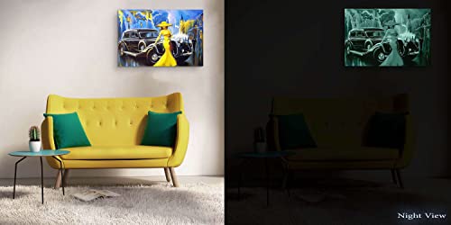 Startonight Quadro su Tela Retro Automobile Nera e Donna nel Colore Giallo - Grandi Quadri Moderni Astratti - Stampe Camere da Letto 80 x 120 cm