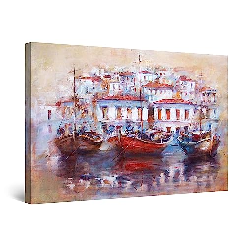 Startonight Quadro su Tela Vecchio Porto del Pescatore a Creta, in Grecia - Grandi Quadri Moderni Paesaggio Stampe Camere da Letto 80 x 120 cm