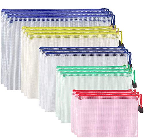 STARVAST - Confezione da 15 buste portadocumenti, chiusura con zip, 5 misure diverse, trasparenti, in PVC (A4, A5, B4, B5, B6), per forniture per ufficio e viaggio, 5 colori assortiti