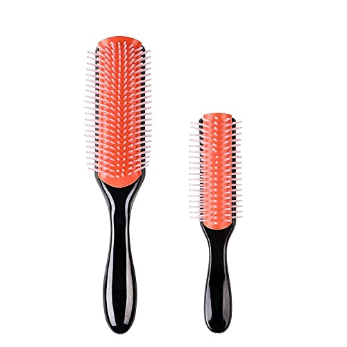 STARWAVE Hair Brush for Natural Curly Hair Black 9 Row D4 Classic Styling Travel Nylon Bristle Detangler Wet Thin Thick Wavy Plastic Comb