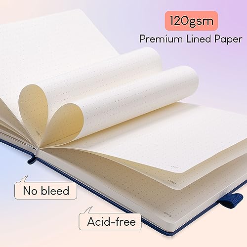 【Pagine spesse】 Il nostro taccuino bullet-journal punteggiato A5 è perfetto per gli appassionati del bullet dotted journal, con le sue pagine spesse da 120 g/m² che offrono un'esperienza di scrittura fluida e senza sbavature. È anche ottimo per prendere appunti e per la pianificazione. Il nostro taccuino è molto versatile e può essere usato ogni giorno come journal, diario o quaderno per appunti.