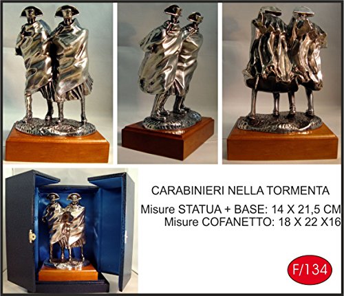 Statua CARABINIERI nella TORMENTA Peltro Argentato Trofeo carabiniere Alto 21 cm