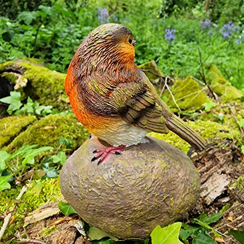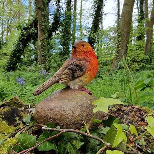 Questo luminoso Robin è arroccato su una pietra ed è sicuro di aggiungere un tocco di divertimento alla tua area prescelta