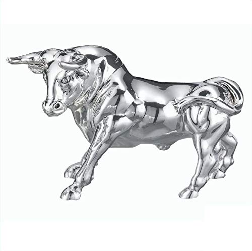 STATUA TORO IN RESINA ARGENTO SCULTURA TORO DA CORRIDA misura 10 cm - Scatola Regalo Inclusa - Made in Italy