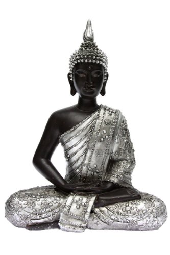 Statuetta Buddha seduto - Effetto argento invecchiato - Altezza 29 cm