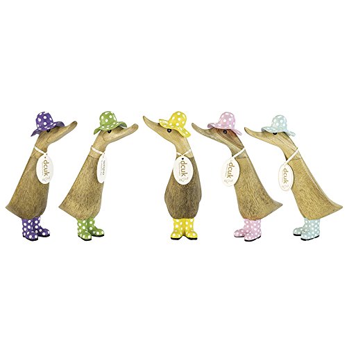 DCUK Statuetta decorativa in legno a forma di anatra con cappello e stivali di gomma, ornamento regalo, Pink