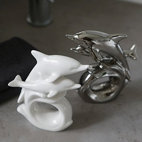 Statuetta a forma di delfino, in ceramica, larghezza 11 cm, altezza 13 cm, colore: argento