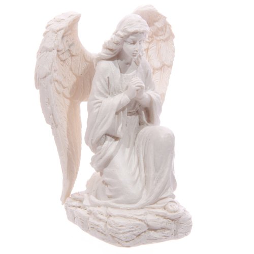 Statuetta da casa o giardino con angelo in ginocchio, decorazione commemorativa, bianco