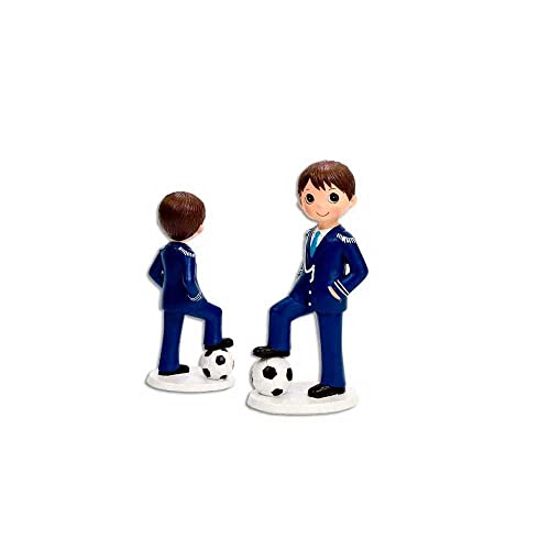 Statuetta di torta Comunione, bambino con costume ammiraglio con pallone da calcio. Bambola per torta e souvenir della prima comunione.