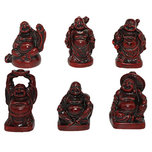 Set di 6 statuette di Buddha che ride, 5 cm, in resina rossa (5 cm, rosso, resina)