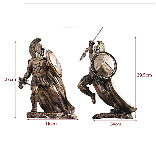 Barm Statuette da Collezione spartane del re Leonida, Statue greche del Guerriero di Sparta con Lancia e Scudo, Finitura Bronzo Sculture di Eroi retrò Decor B 29x20x14cm (11x8x6 Pollici)