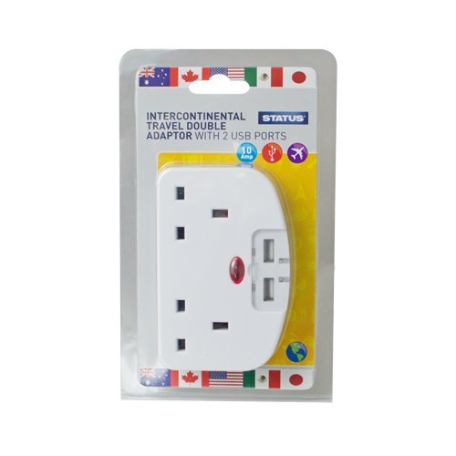 Status STITAWUSB1PK3 2-Way USA Intercontinental Adaptor with 2 USB Charging Ports