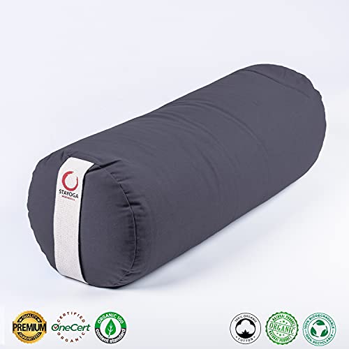 STAYOGA Cuscino Bolster di Meditazione per Yoga, 24 cm di Diametro x 64 cm di Lunghezza. Si USA generalmente Come Supporto per la Colonna vertebrale. Realizzato a Mano. Alta Resistenza. (Grigio)