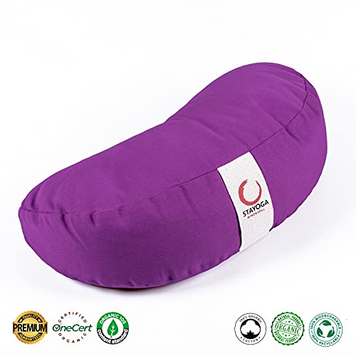 STAYOGA Cuscino a Mezzaluna per Meditazione e Yoga, adotta Una Postura Corretta nella Pratica della Meditazione, Realizzato artigianalmente. (Lilla)